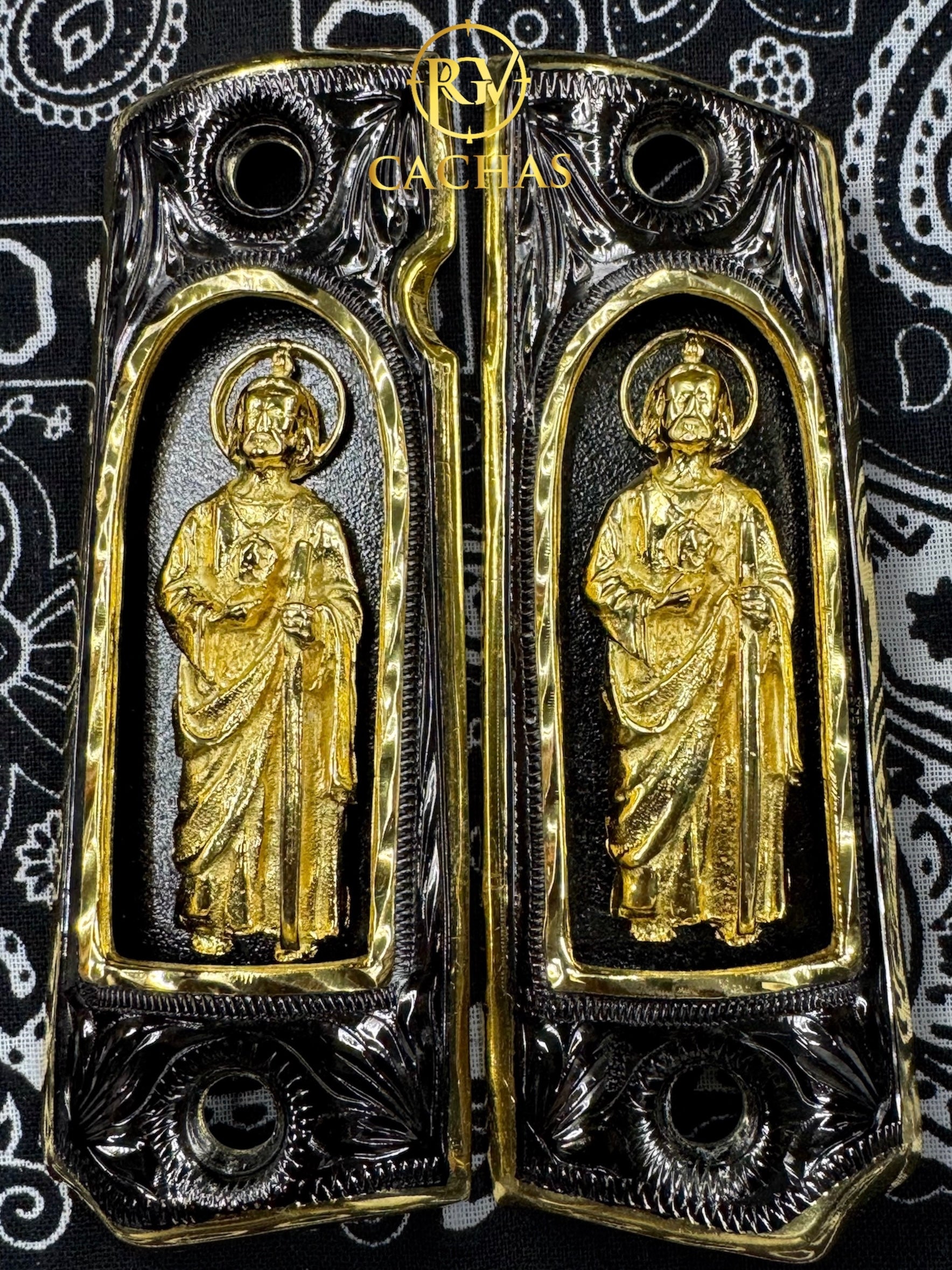 - 24K Real gold plated San Judas on nickel plated engraved grips.