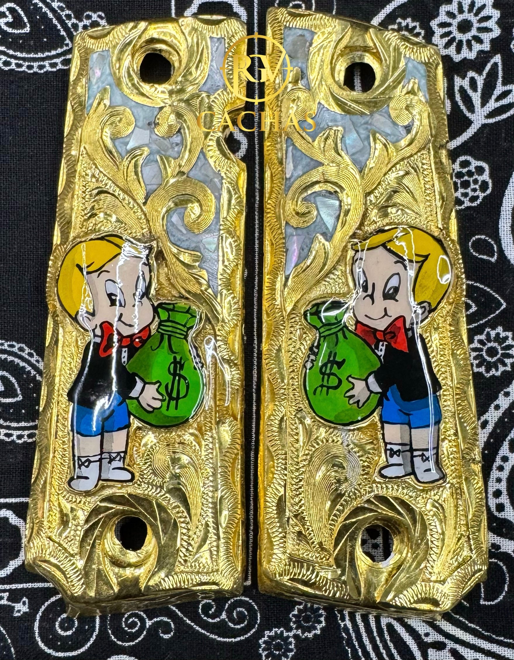 Richie Rich on 24K real gold plated scroll engraved grips with concha nacar.