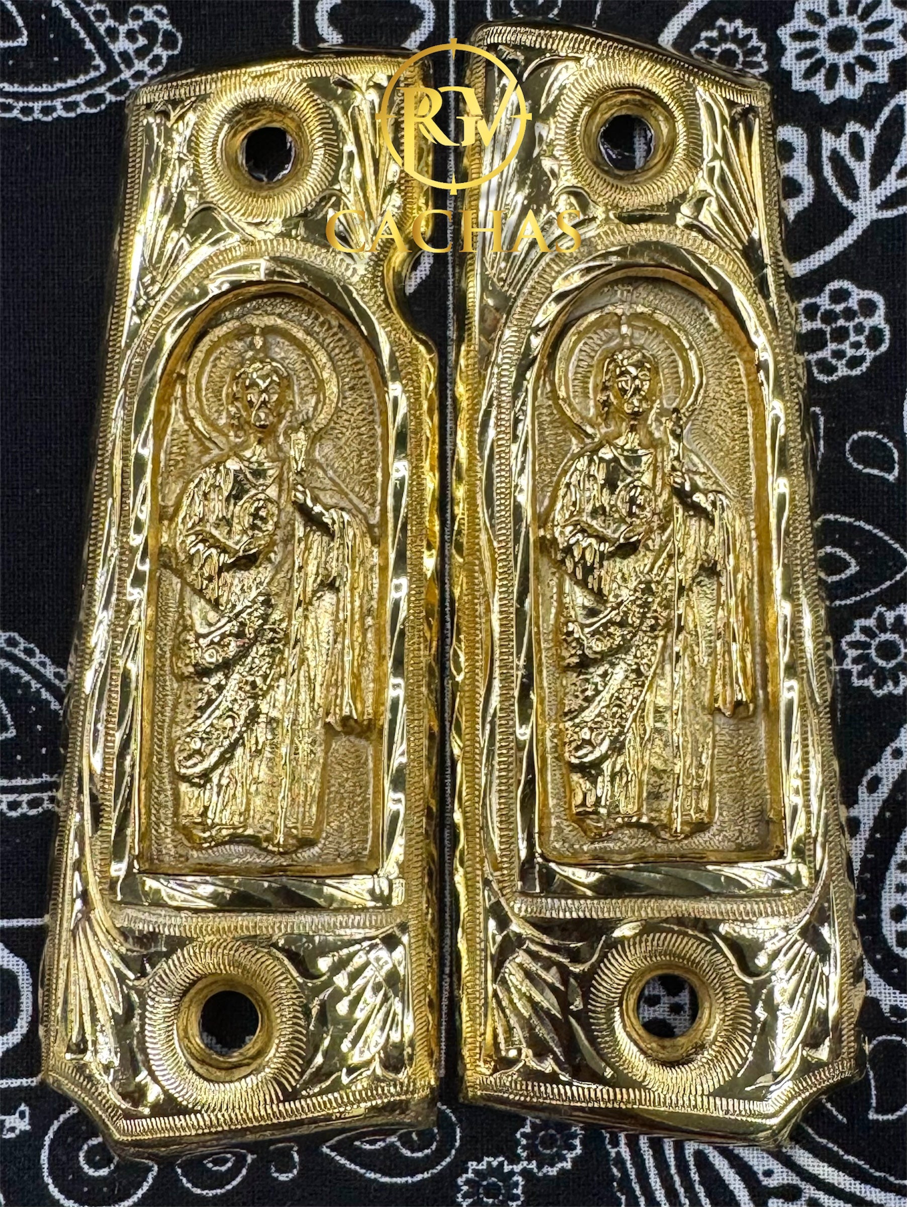 24K Real gold plated San Judas on engraved grips.