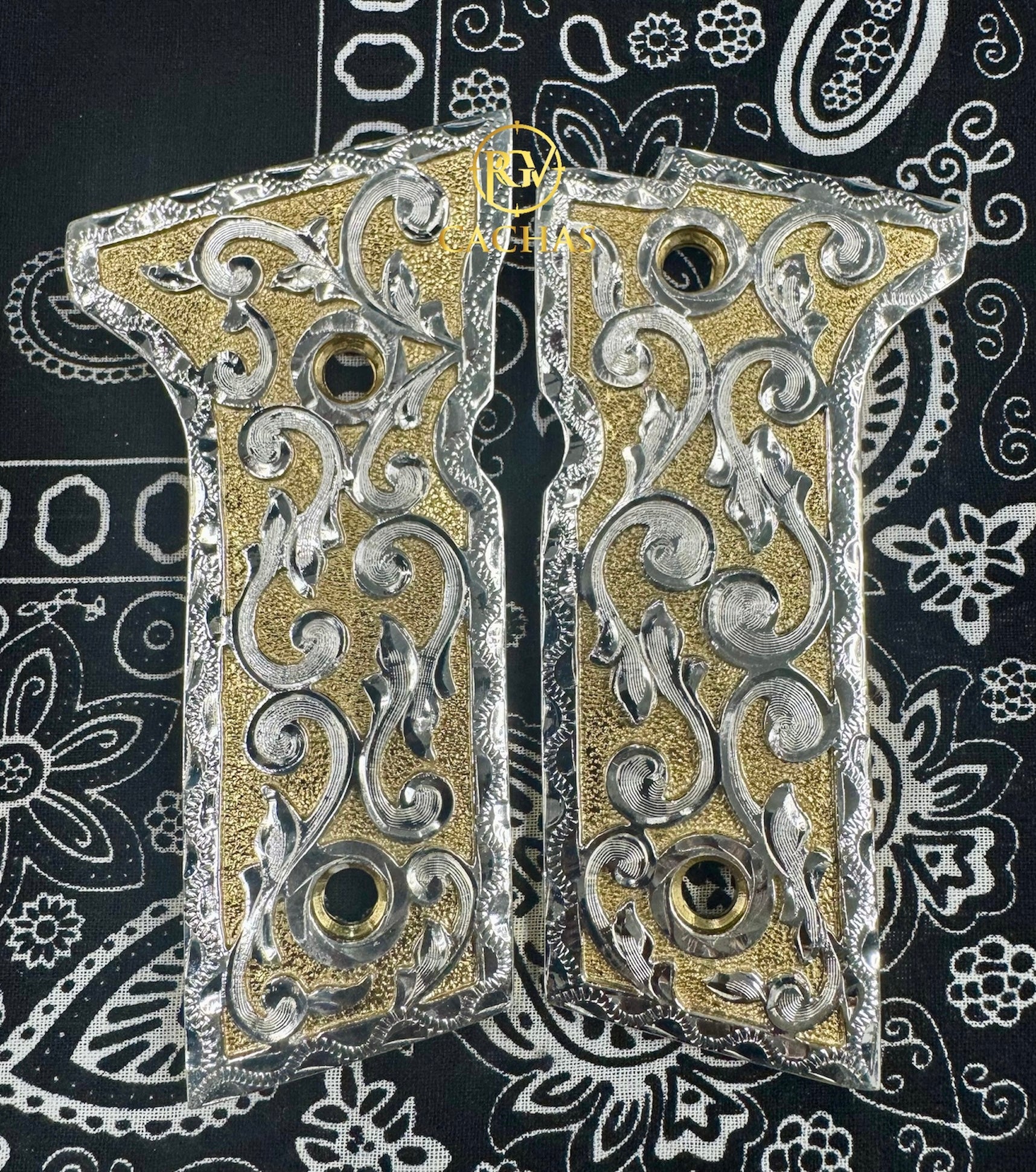 Nickel plated scrolls on 24K real gold plated grips.