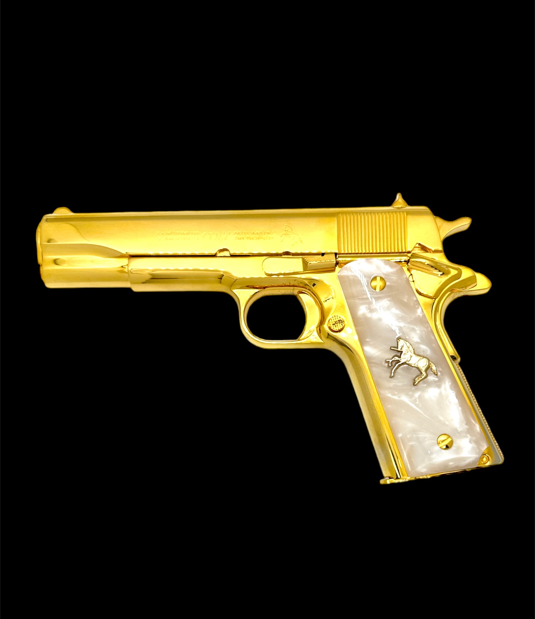 Pearl white horse resin grips.