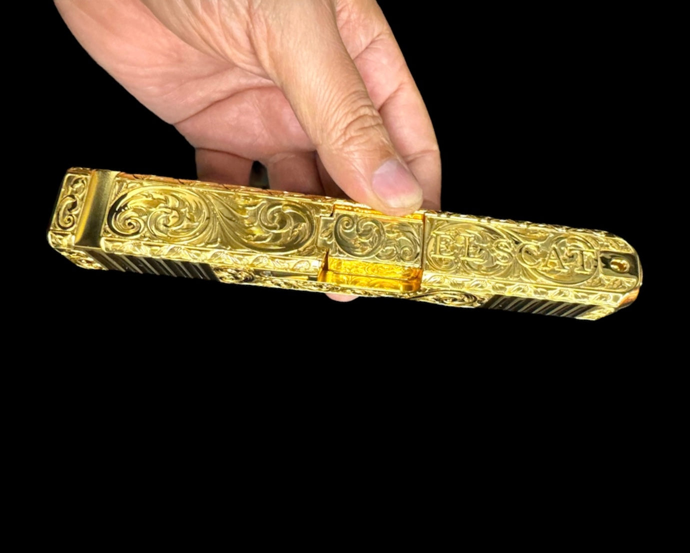 Custom scroll laser engraved slide and barrel.
